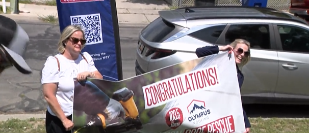 The knock on the door was followed by cheers and a heartfelt announcement: The Weber family had won a free roof, courtesy of Olympus Roofing.