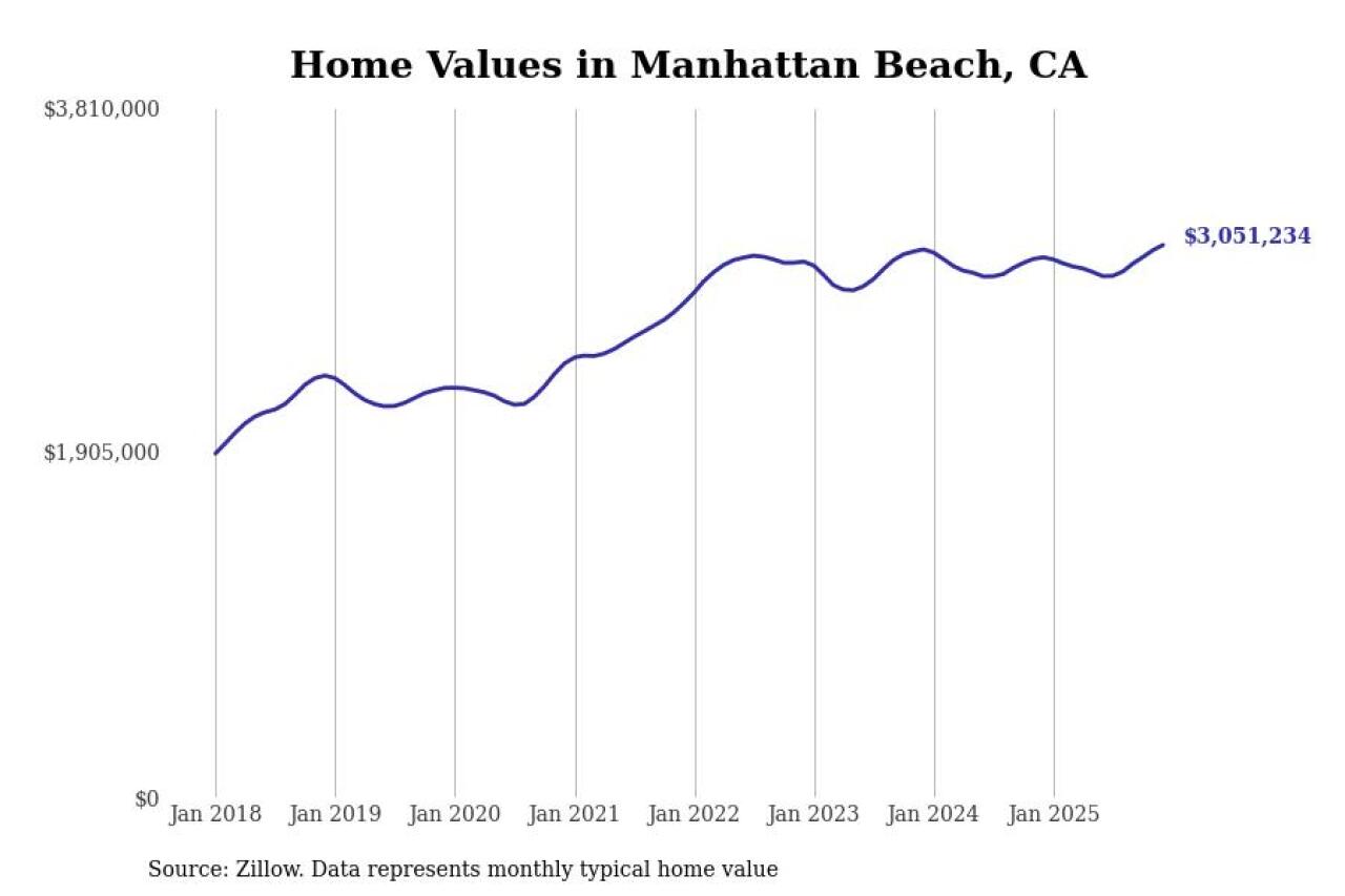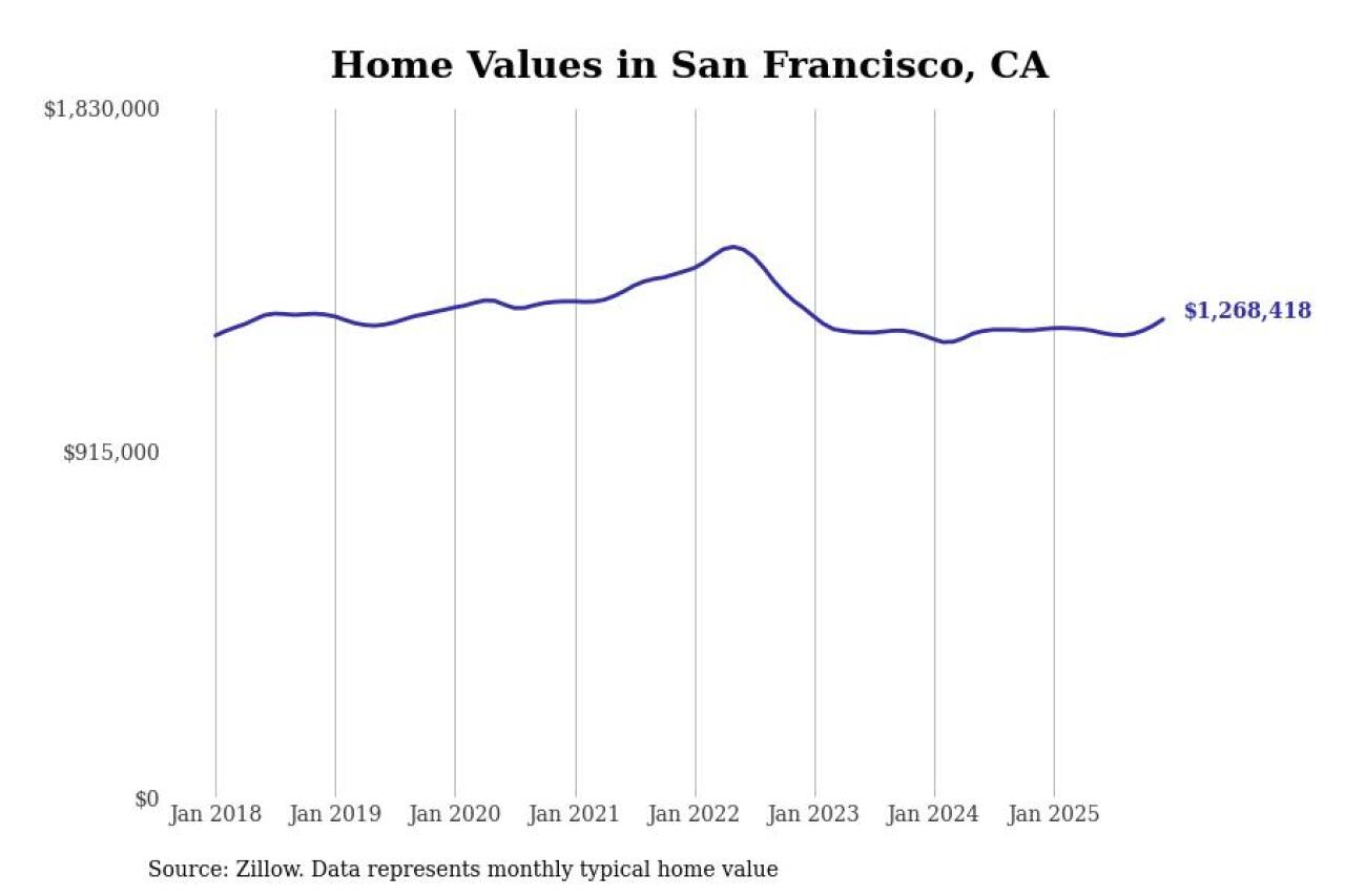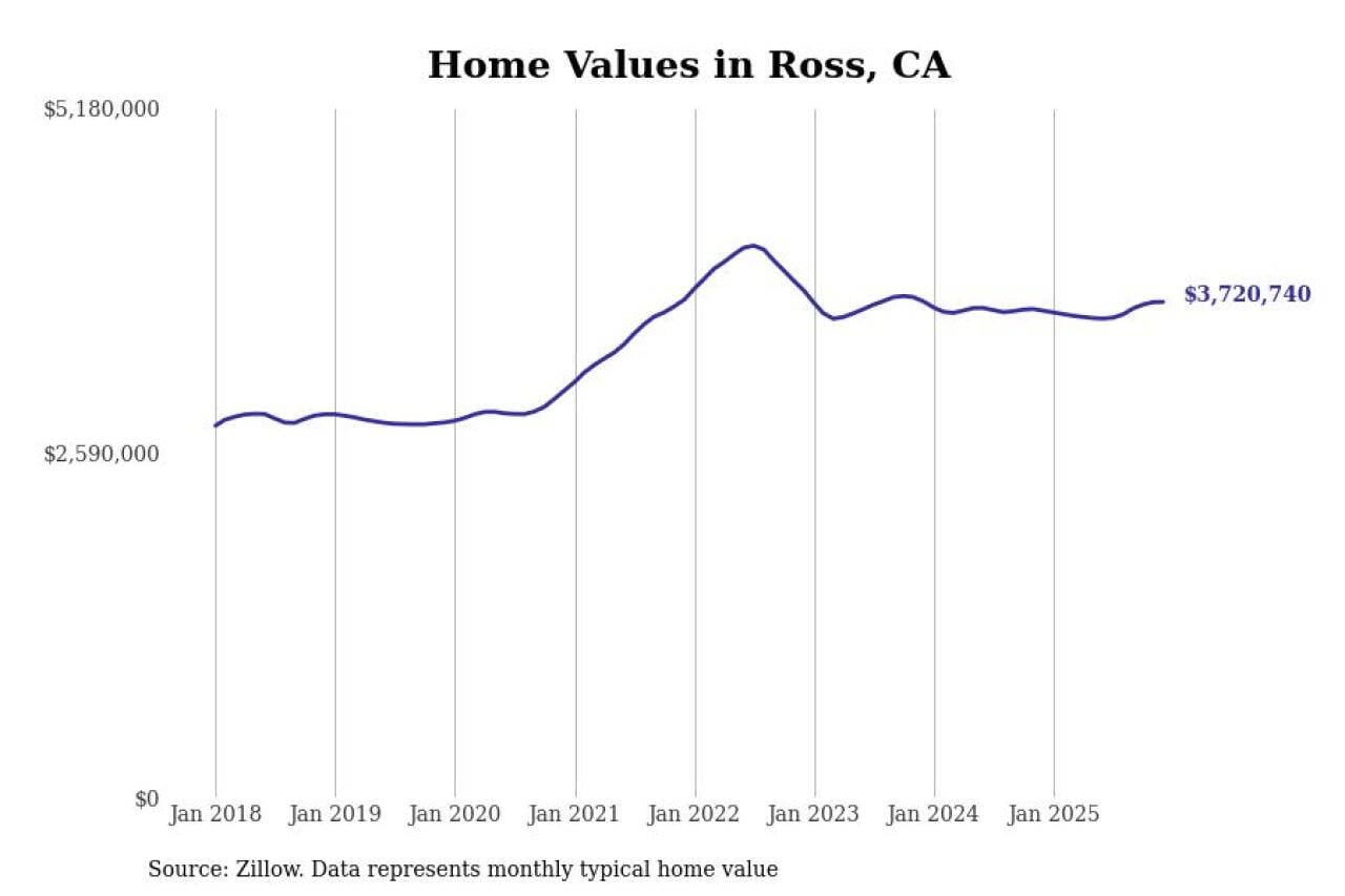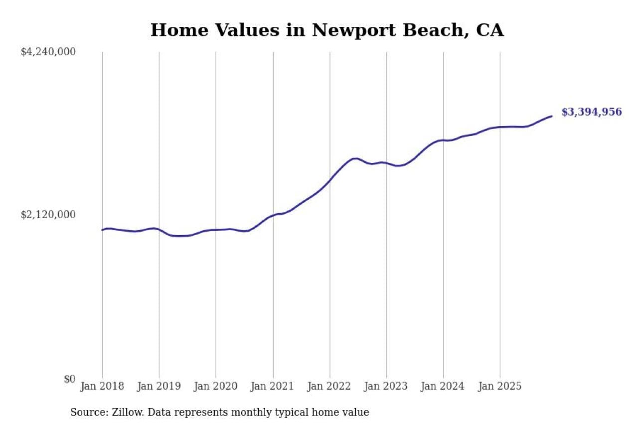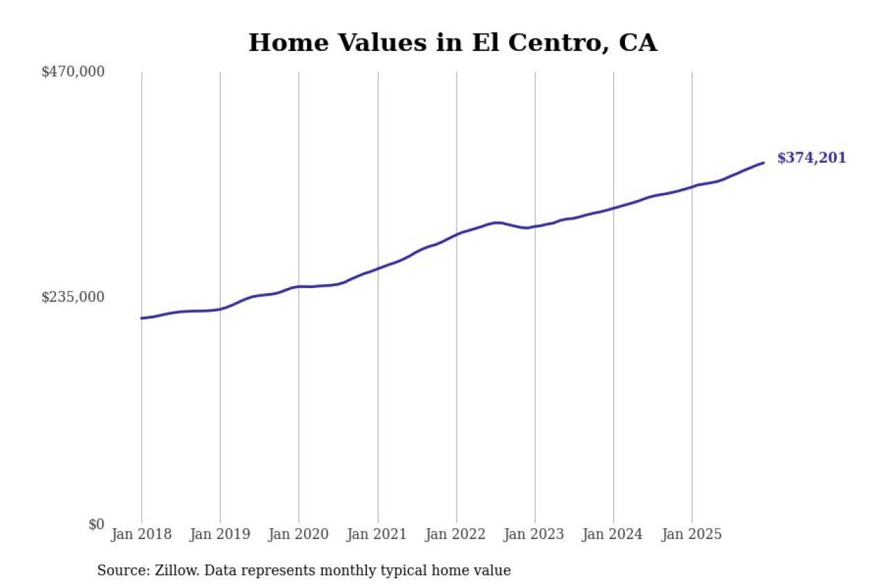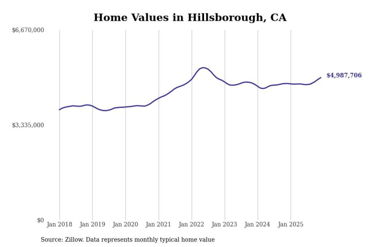 Stacker compiled a list of cities with the fastest-growing home prices in California using data from Zillow. Cities are ranked by the dollar change in the Zillow Home Values Index for all homes from the 12 months ending December 2025. The charts in this story were created automatically using Matplotlib. Data was available for 50 cities and towns in California.