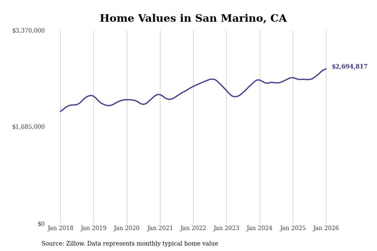 Stacker compiled a list of cities with the most expensive homes in the Los Angeles metro area using data from Zillow. Charts show the monthly typical home value since January 2018. Data was available for 151 cities and towns.