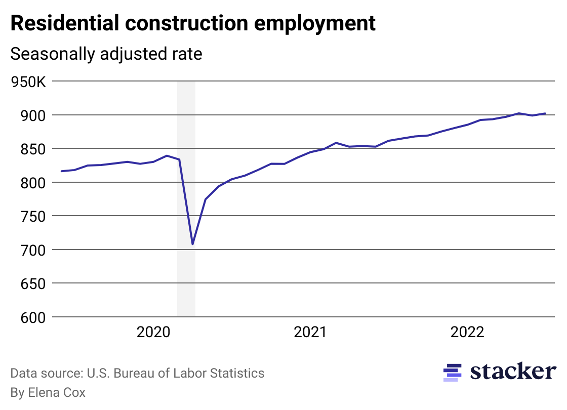 Stacker examined data from the Census Bureau and the Bureau of Labor Statistics to take a closer look at what’s happening in the residential construction industry.