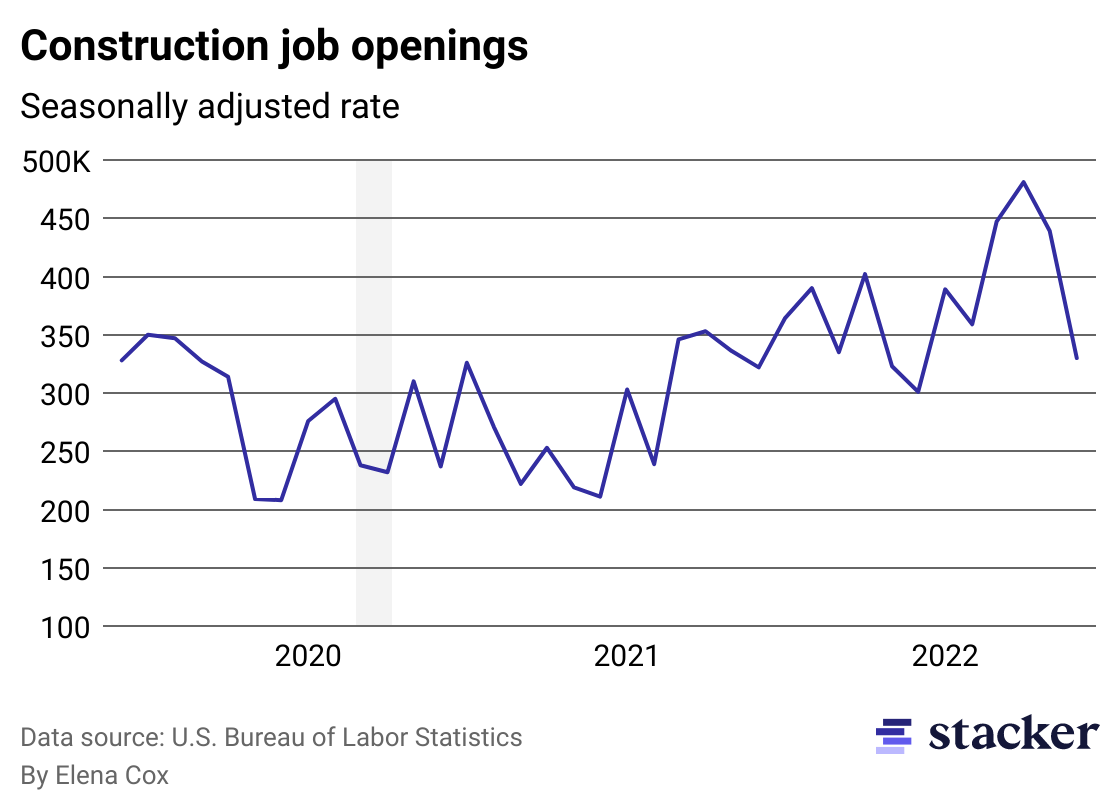 Line chart showing rate of construction job openings since 2019