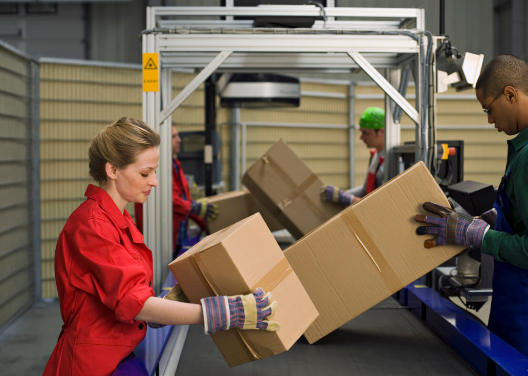Graphic-designed image of silhouettes of people working overlayed with a photo of an industrial area.