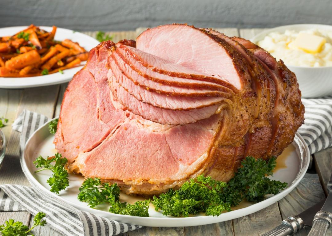 Ham on platter.