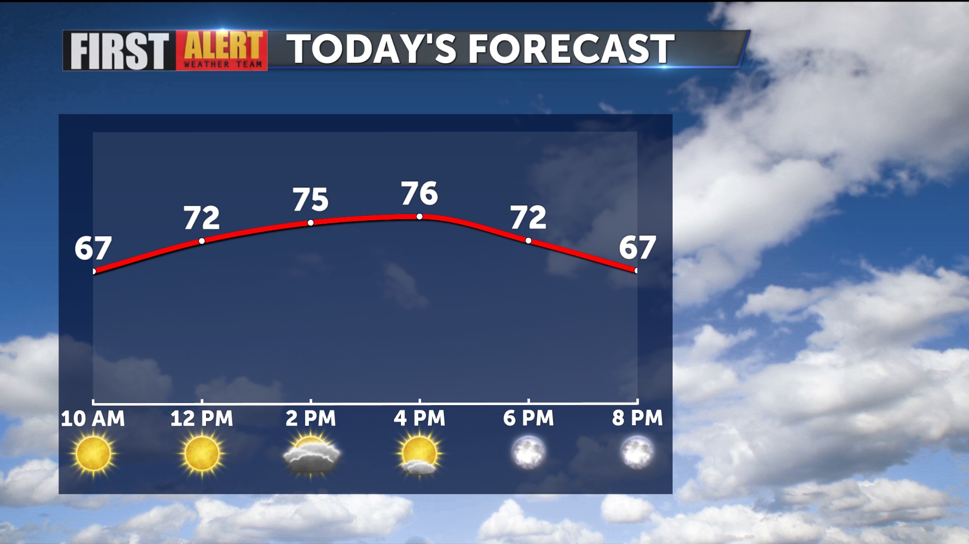 With calmer winds here in the Valley, highs will be pleasant and above normal through the weekend. We're aiming at mid-to-upper-seventies today.