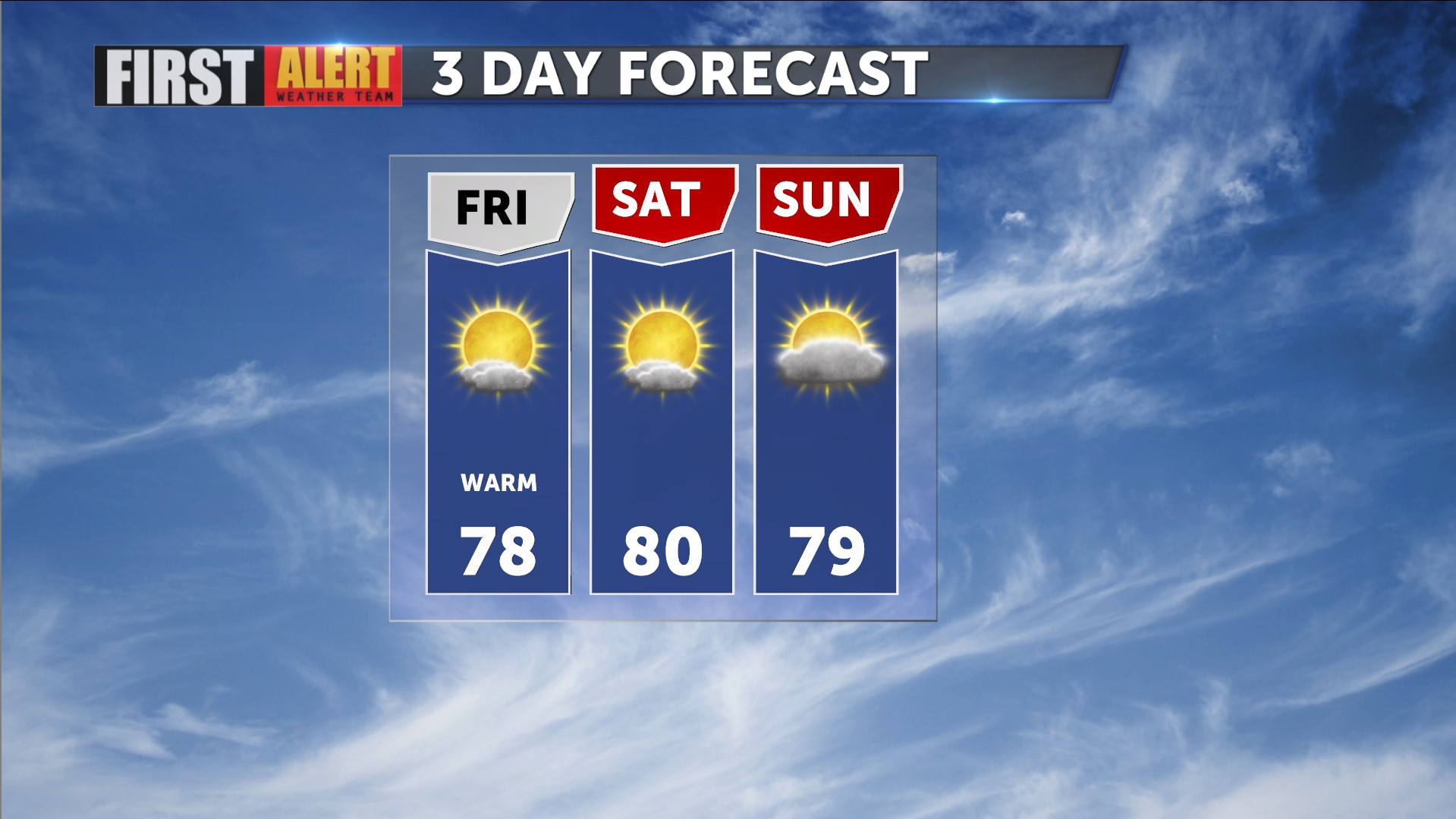 In the weekend, we'll broach the eighty degree mark, but only briefly before a significant cooling trend takes us into the sixties for much of next week.