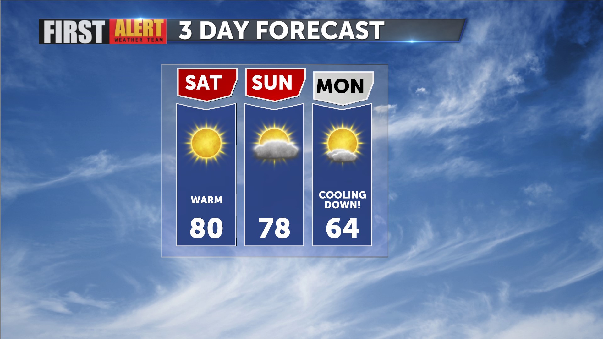 Over the weekend, we'll touch the 80-degree mark briefly, but a sharp cool down arrives Monday, which likely means some gusty winds return Sunday night and Monday morning.